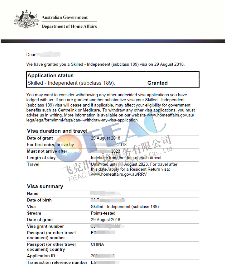 8月29日:恭喜Mr. Ma189簽證下簽 (ANZSCO 233512)!