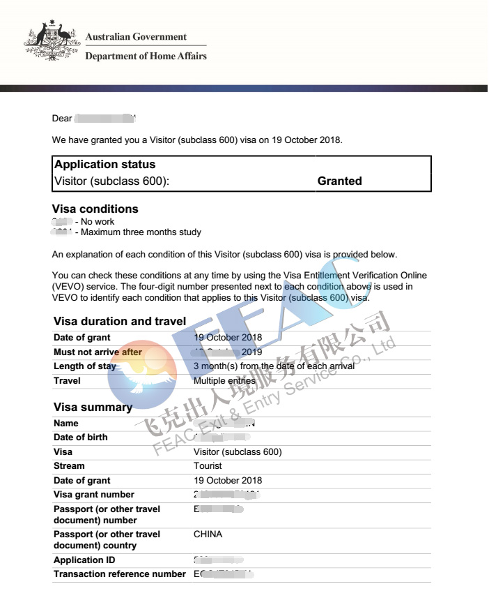 10月19日:恭喜Mr.Chen 600旅游簽證下簽!