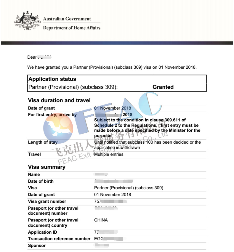 11月1日: 恭喜Mr. Lu 309配偶簽證下簽!