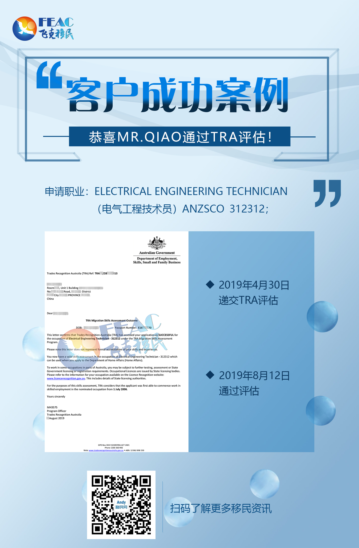 8月12日:恭喜Mr.Qiao通過TRA評估(電氣工程技術員)!