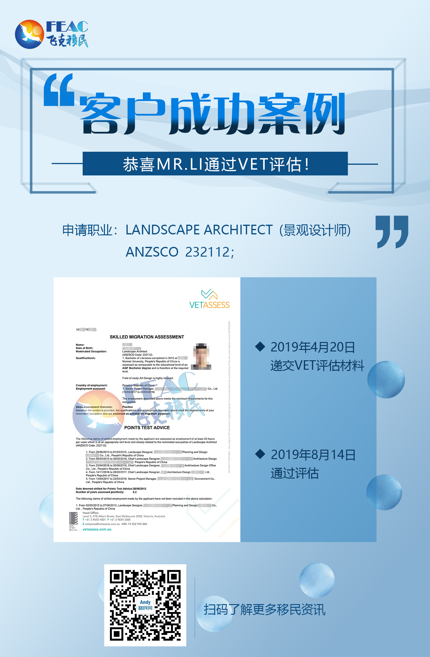 8月14日:恭喜Mr.Li通過VET評估(景觀設計師)!