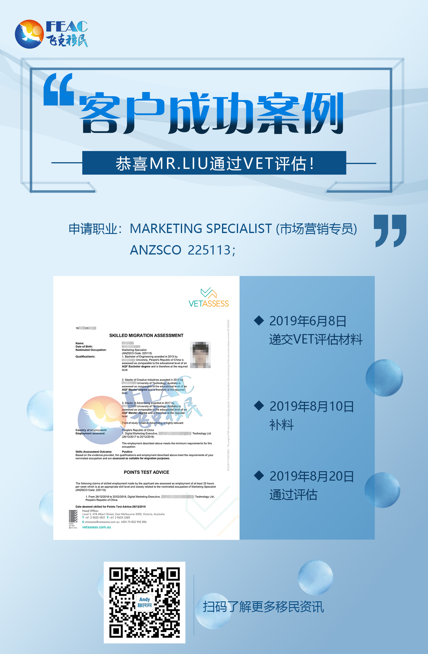 8月20日:恭喜Mr.Liu通過VET評估(市場營銷專員)!