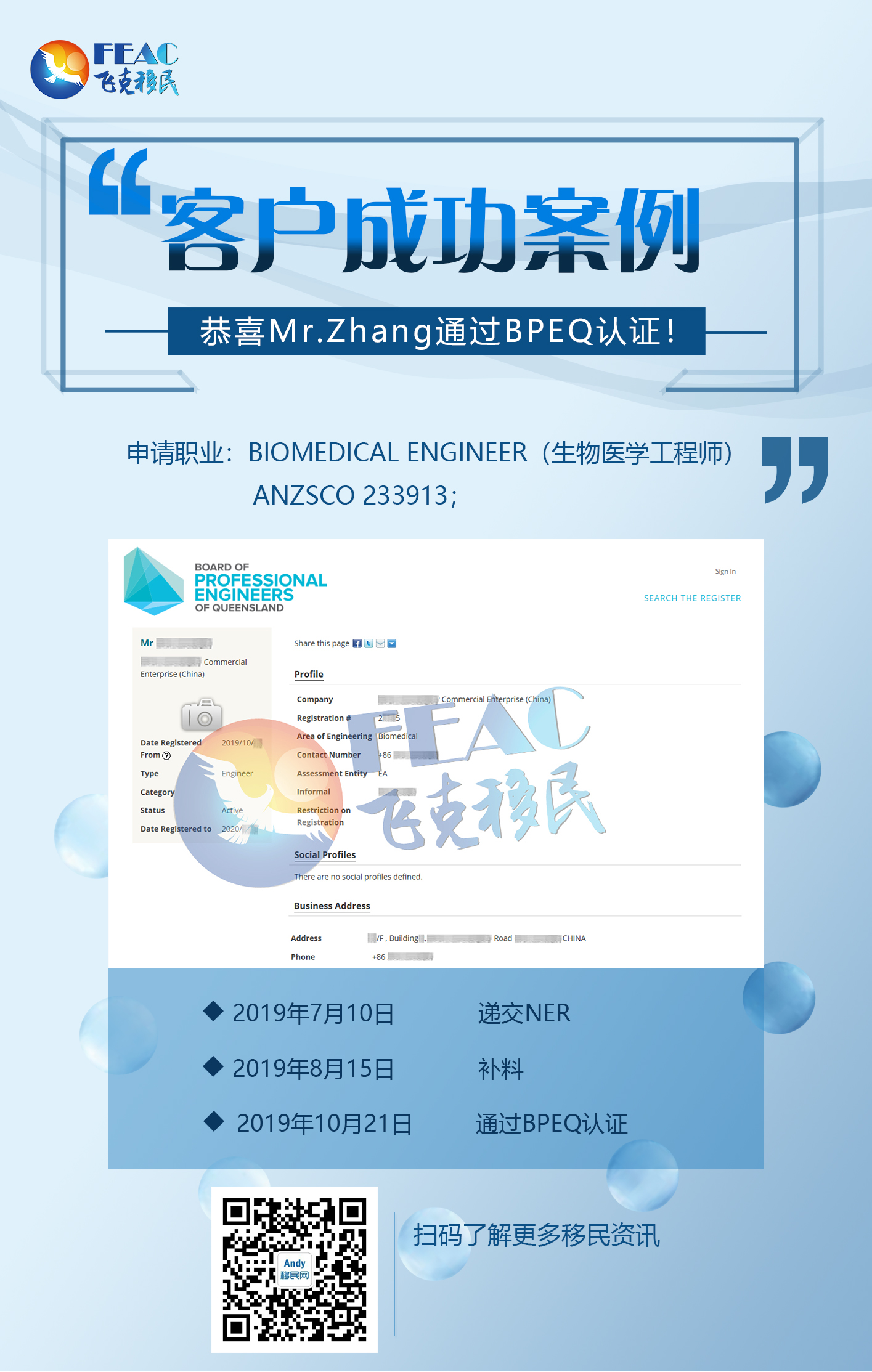 10月21日:恭喜Mr.Zhang通過BPEQ專業工程師協會認證(生物醫學工程師)!