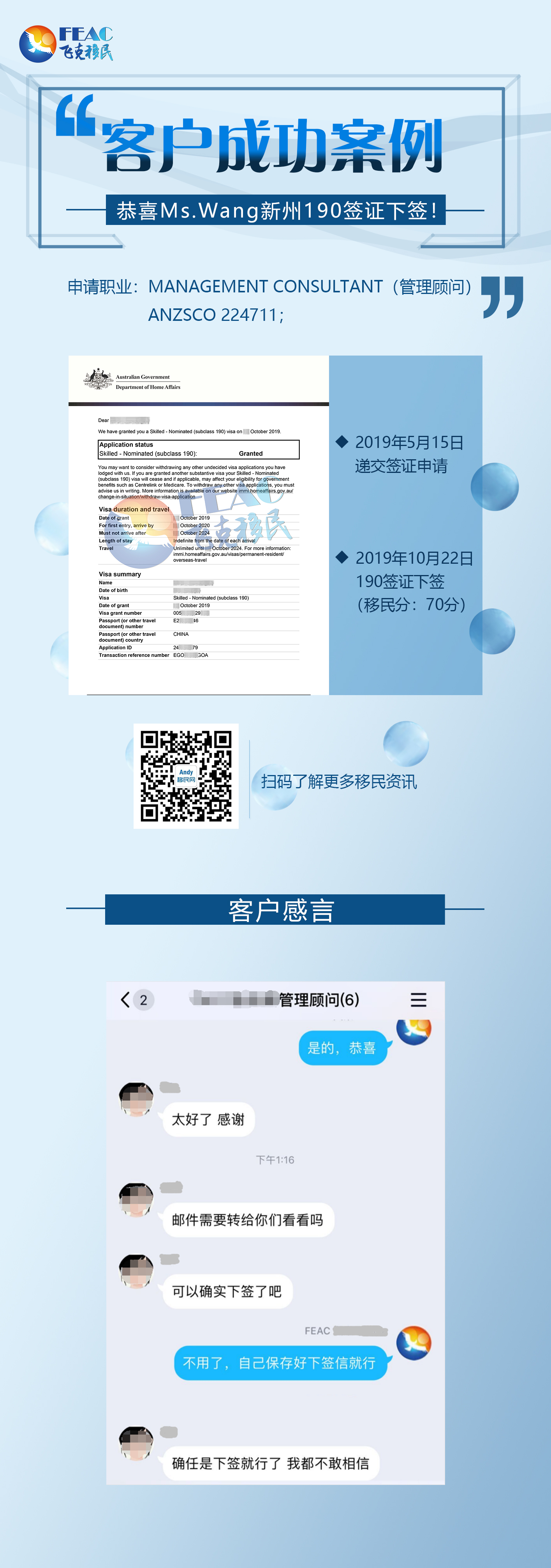 10月22日:恭喜Ms.Wang新州190簽證下簽 (管理顧問)!