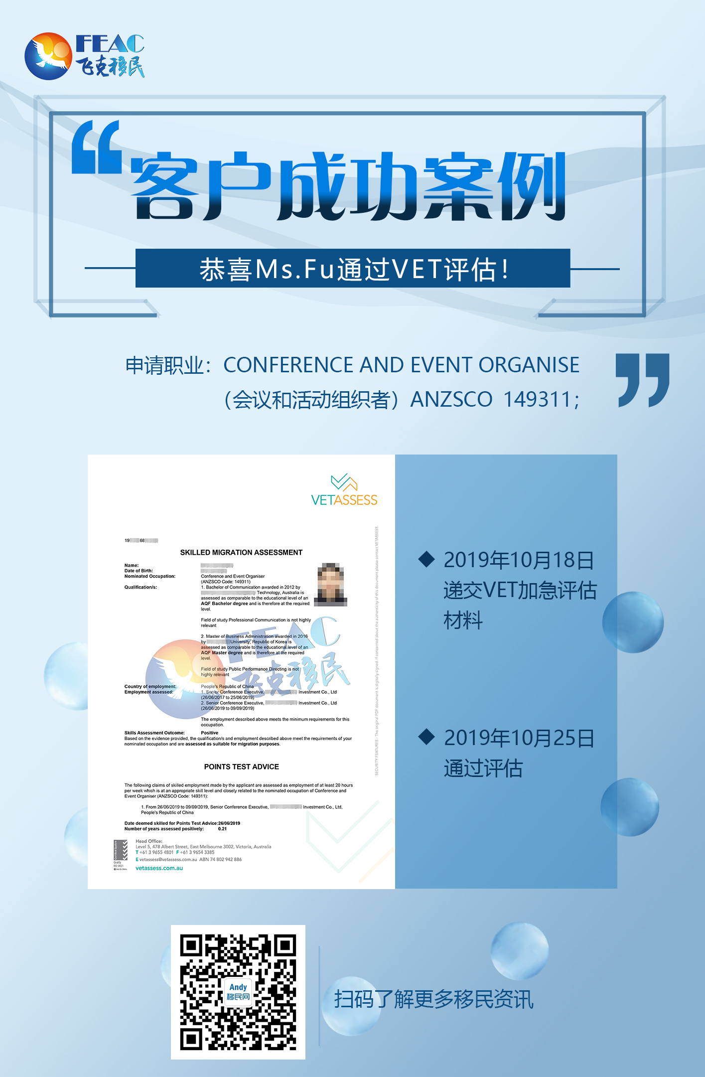 10月25日:恭喜Ms.Fu通過VET評估(會議和活動組織者)!