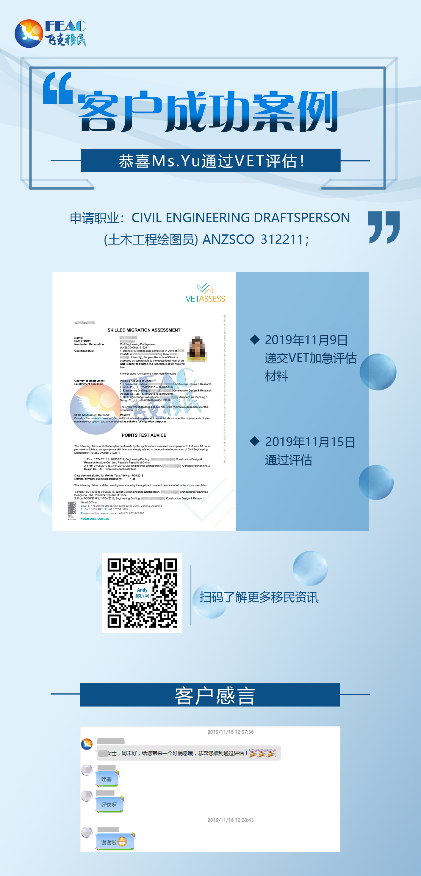 2019年11月9日遞交VET加急評估材料,2019年11月15日通過評估。