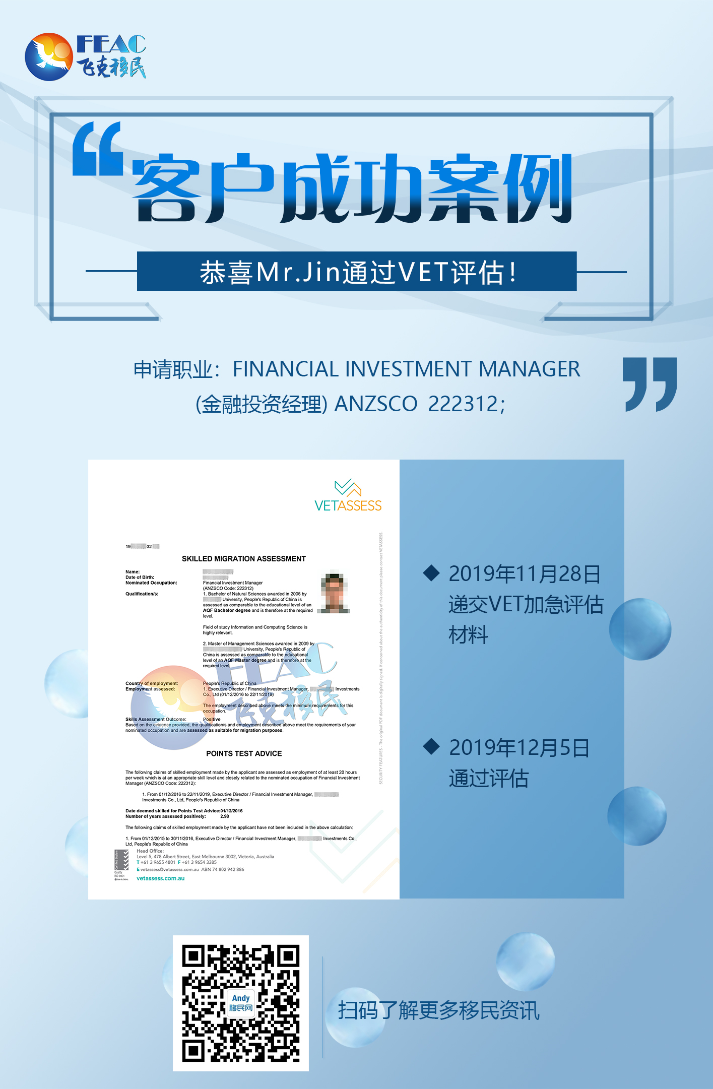 12月5日:恭喜Mr.Jin通過VET評估(金融投資經理)!