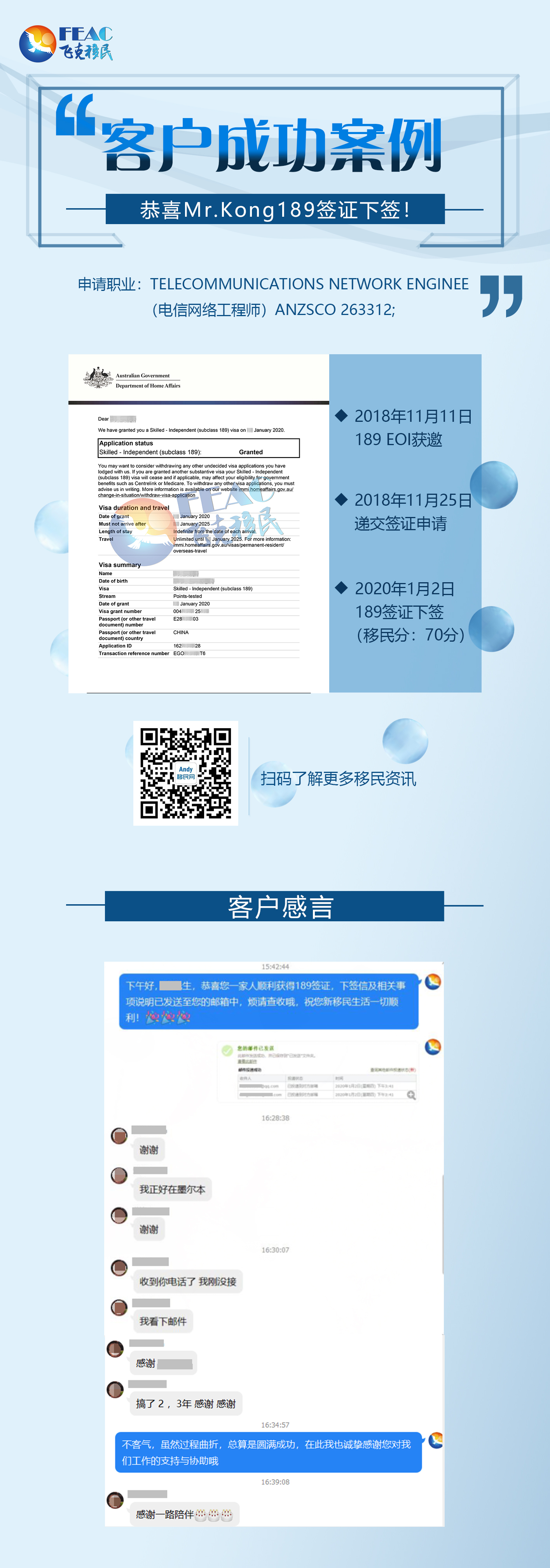 1月2日:恭喜Mr.Kong189簽證下簽 (電信網絡工程師)!