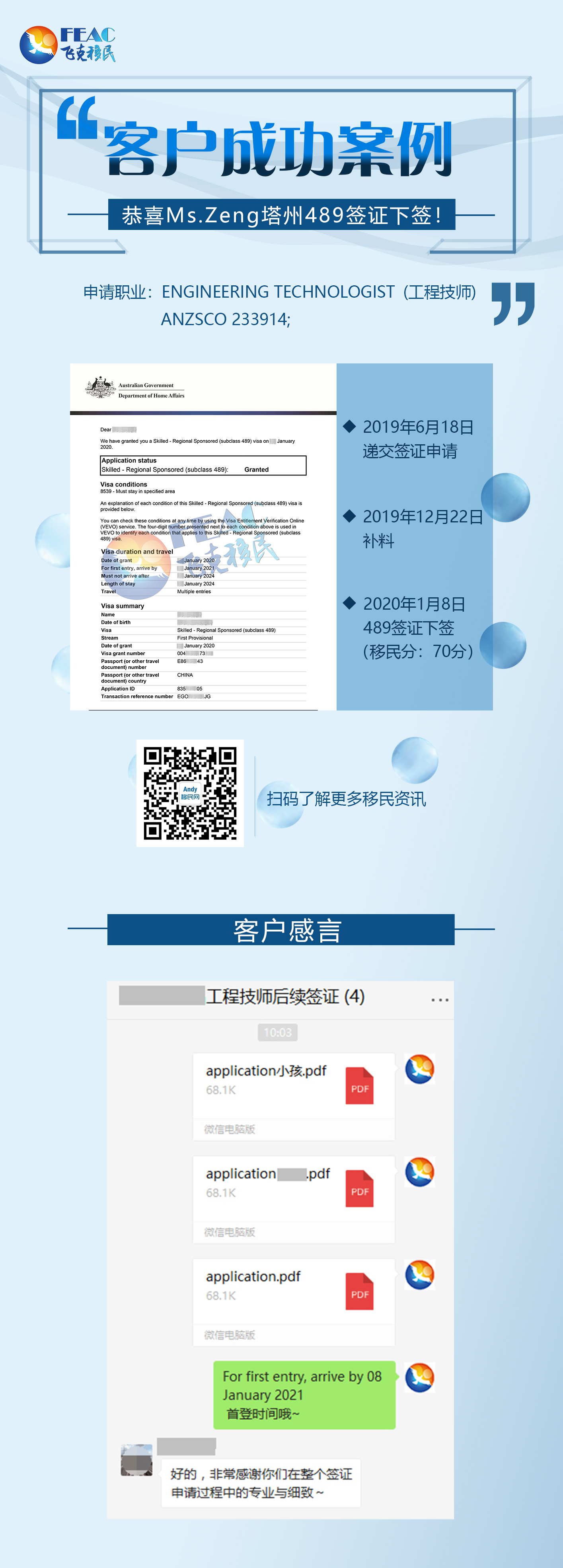 1月8日:恭喜Ms.Zeng塔州489簽證下簽 (工程技師)!
