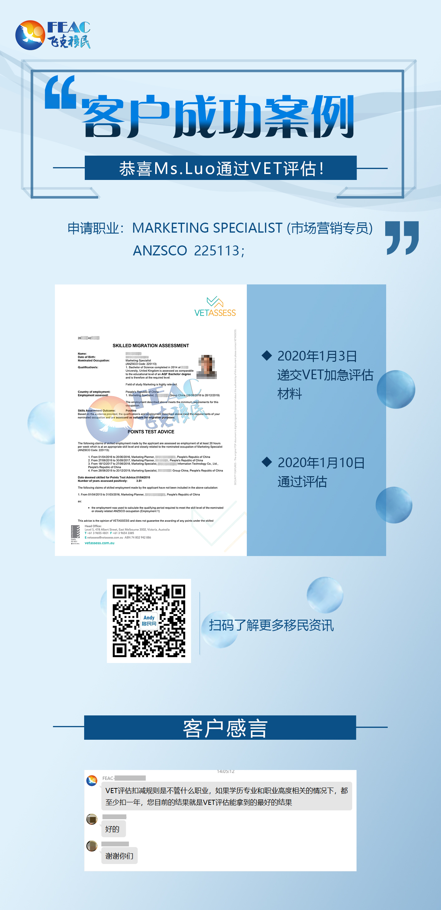 恭喜Ms.Luo通過VET評估!