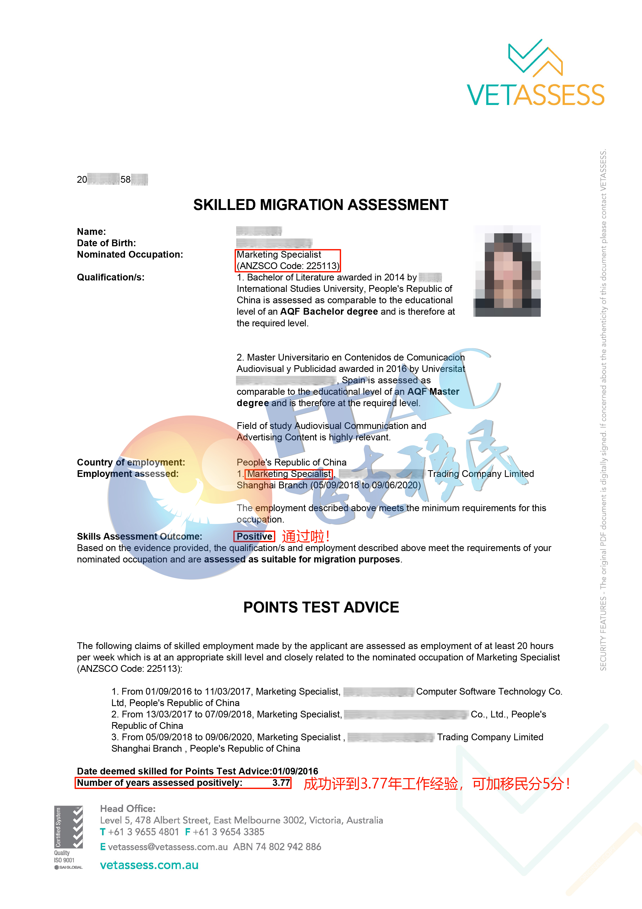 申請職業(yè):Marketing Specialist?(市場營銷專員) ANZSCO?225113;