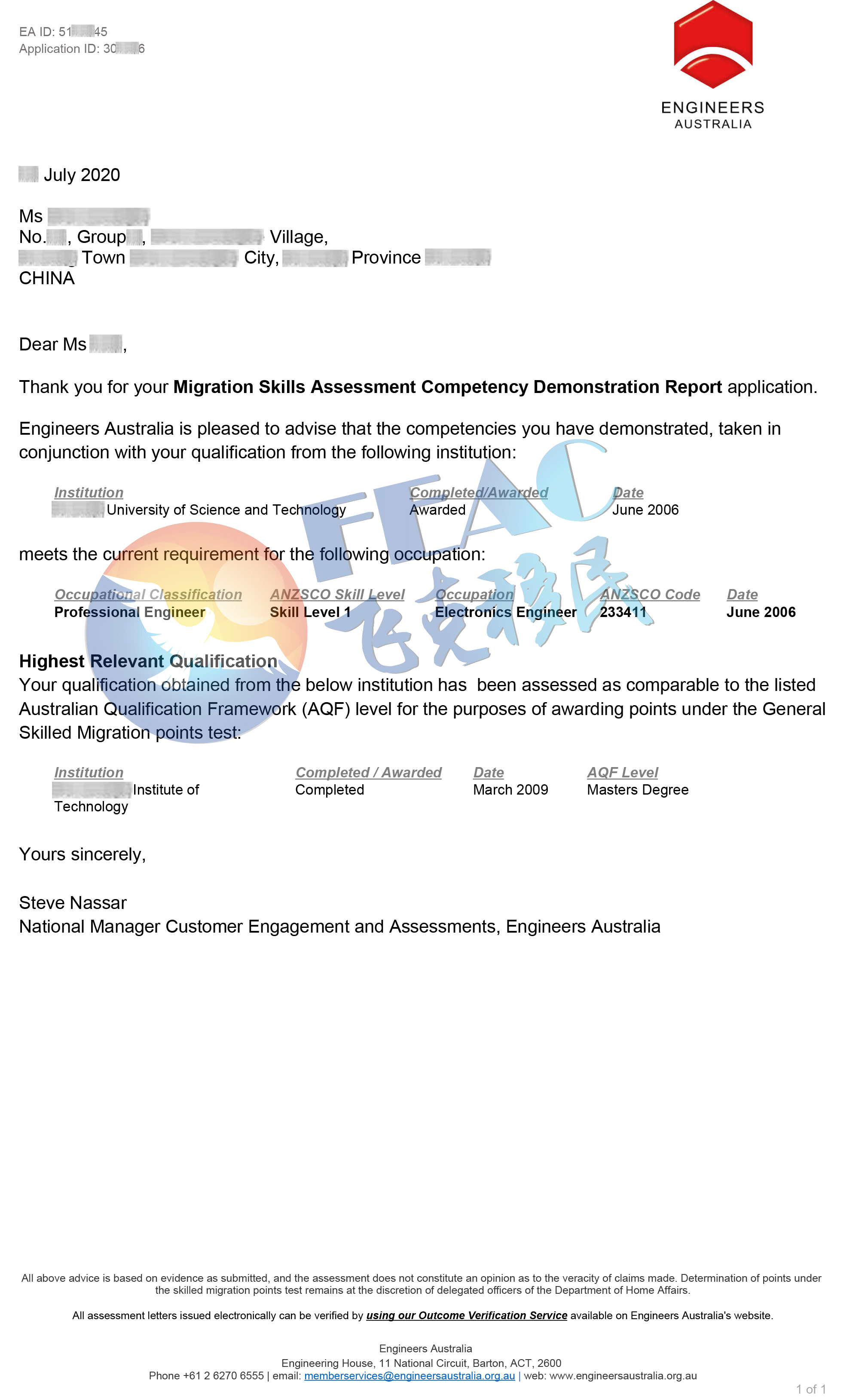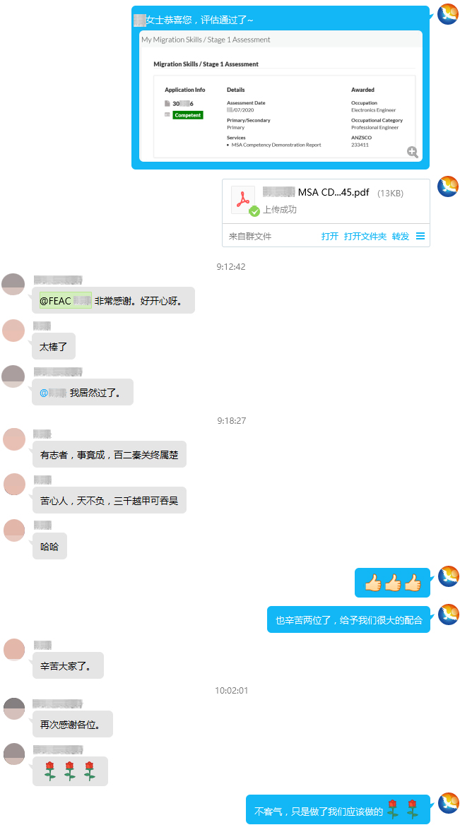 客戶國內電子信息工程專業畢業,CDR是EA評估的重點內容。但是由于沒有相關工程師工作經驗,且畢業時間已久,客戶能提供的材料有限。好在辦理過程中客戶配合度較高,飛克文案憑借多年的實操經驗,想辦法充實CDR內容,最終幫助客戶成功拿到電子工程師的EA評估結果,客戶表示十分感謝!