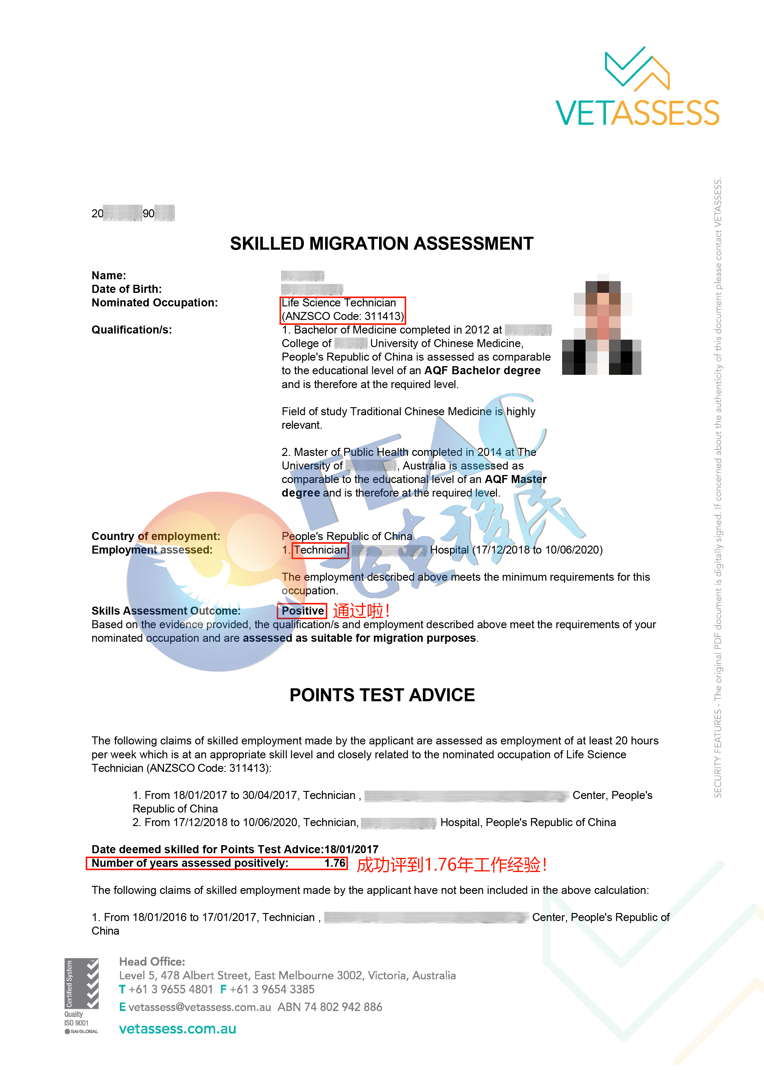 客戶的基本條件不錯,本科是中醫(yī)學專業(yè),與所評職業(yè)高度相關(guān),但客戶所能提供的關(guān)于實際工作經(jīng)驗的材料有限,經(jīng)過飛克文案仔細梳理,有針對性地進行補充,最終客戶的VET評估無電調(diào)無補料一次通過。