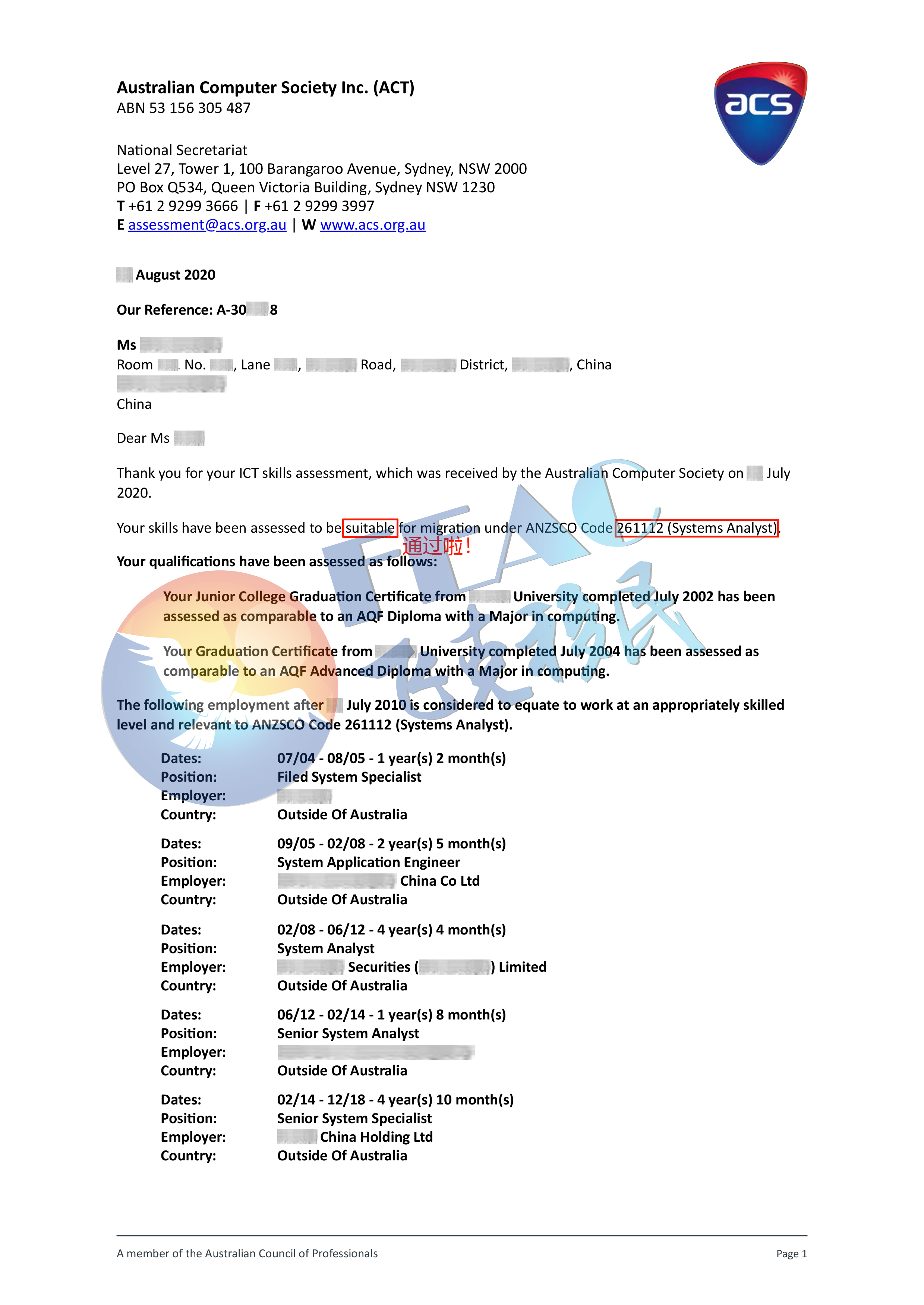 客戶的職業(yè)評(píng)估快到期,我們預(yù)先準(zhǔn)備更新職評(píng),由于ACS更新評(píng)估標(biāo)準(zhǔn),因此客戶材料需要按照新要求準(zhǔn)備,其中很多材料年代已久或已經(jīng)無(wú)跡可尋,飛克文案憑借多年經(jīng)驗(yàn)給客戶完美打造滿分工作經(jīng)驗(yàn),并成功通過(guò)評(píng)估以備新財(cái)年移民申請(qǐng)。