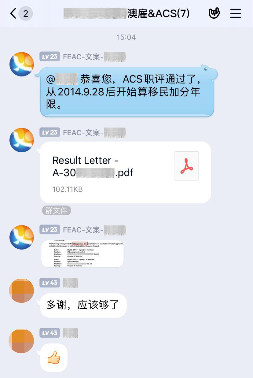 在做職評前期,客戶對ACS職業的選擇猶豫不定,根據anzsco描述認為自己符合多個職業的職責,經過飛克文案與客戶的反復溝通與各個職業的定義解釋,客戶有了一定的了解,充分相信文案工作,積極配合。文案根據客戶的實際工作情況撰寫推薦信并準備工作證明材料,在兩周內高效完成準備工作并幫客戶遞交了申請,最終通過ACS評估拿到了令客戶滿意的職評結果。