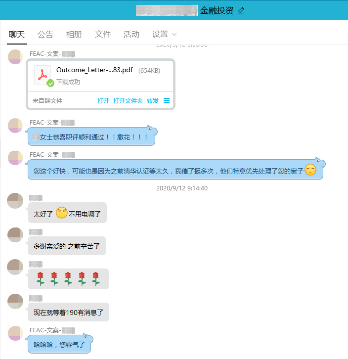 這位客戶的學歷背景和公司背景都與申請職業高度相關,飛克在這個案子處理過程中重點解決了以下問題:1. 學歷認證耗時久,飛克文案頻繁進行了跟進。2. 工作材料多,文案進行了仔細梳理,挑選重點和必要的材料提交。3. 該職業大類下有非常相近的職業,文案在完成工作說明時除了提交專業描述,也對客戶和推薦人進行了培訓和模擬電調以作保障。 最終,客戶未收到電調就收到了VET給出的positive的結果!