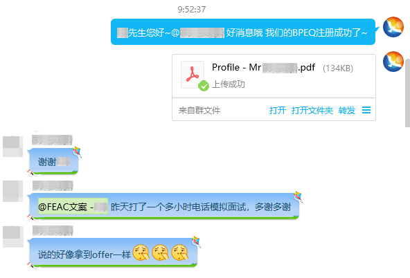 此客戶的BPEQ注冊在第一階段NER階段準備材料很順利,但是在面試這個重要環節經歷了兩次。飛克文案結合以往的面試經驗,給與客戶細心的指導并安排模擬面試,幫助客戶改進面試中存在的問題,最終順利通過面試,并成功獲得BPEQ Letter,通過BPEQ注冊認證。