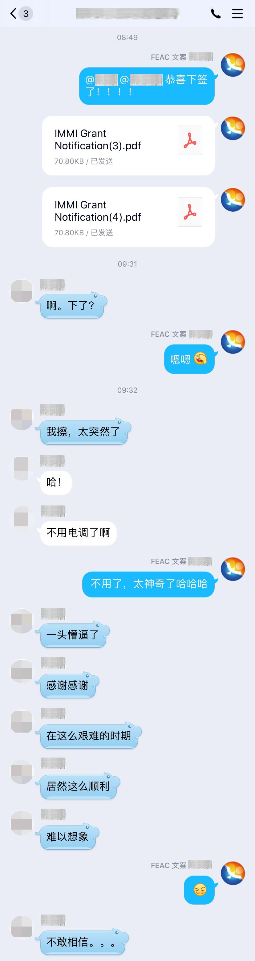9月23日:恭喜Ms.Ye昆州190簽證下簽(生物醫學工程師)!