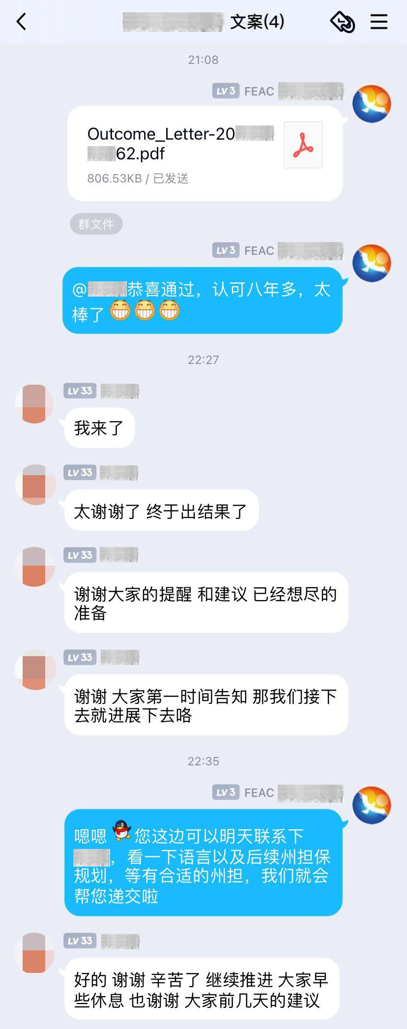 在準(zhǔn)備材料過程中,飛克文案以工作材料為重心,為客戶精心撰寫推薦信,以符合VET的要求且與首次評(píng)估材料不產(chǎn)生矛盾。同時(shí)二次評(píng)估電調(diào)風(fēng)險(xiǎn)較大,遞交后飛克文案又為客戶及其推薦人做了充分的模擬電調(diào)。在客戶的高度協(xié)助和配合下,最終無電調(diào)審理順利通過職評(píng),并拿到了8.67年的加分年限,可為客戶加滿工作經(jīng)驗(yàn)分15分。