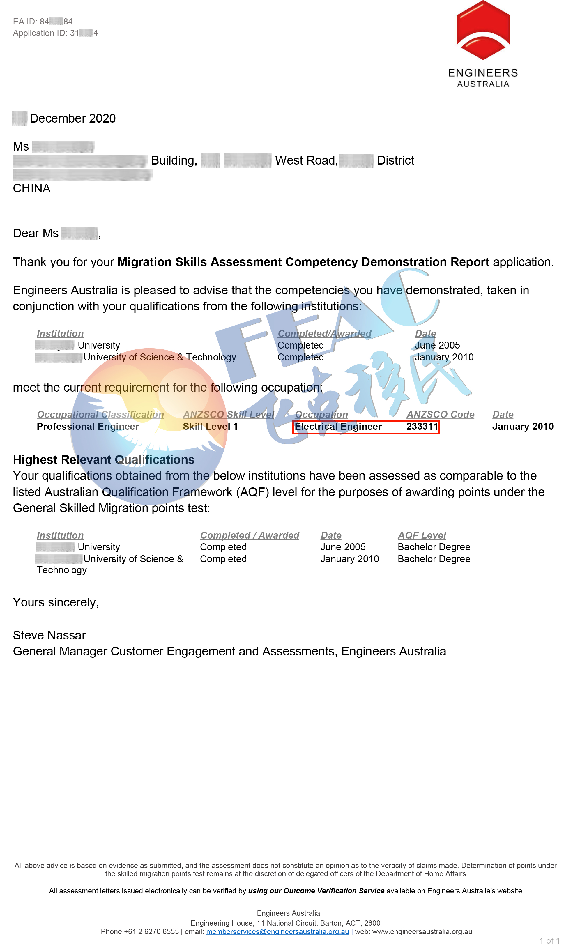 申請職業(yè):Electrical Engineer(電氣工程師) ANZSCO 233311;