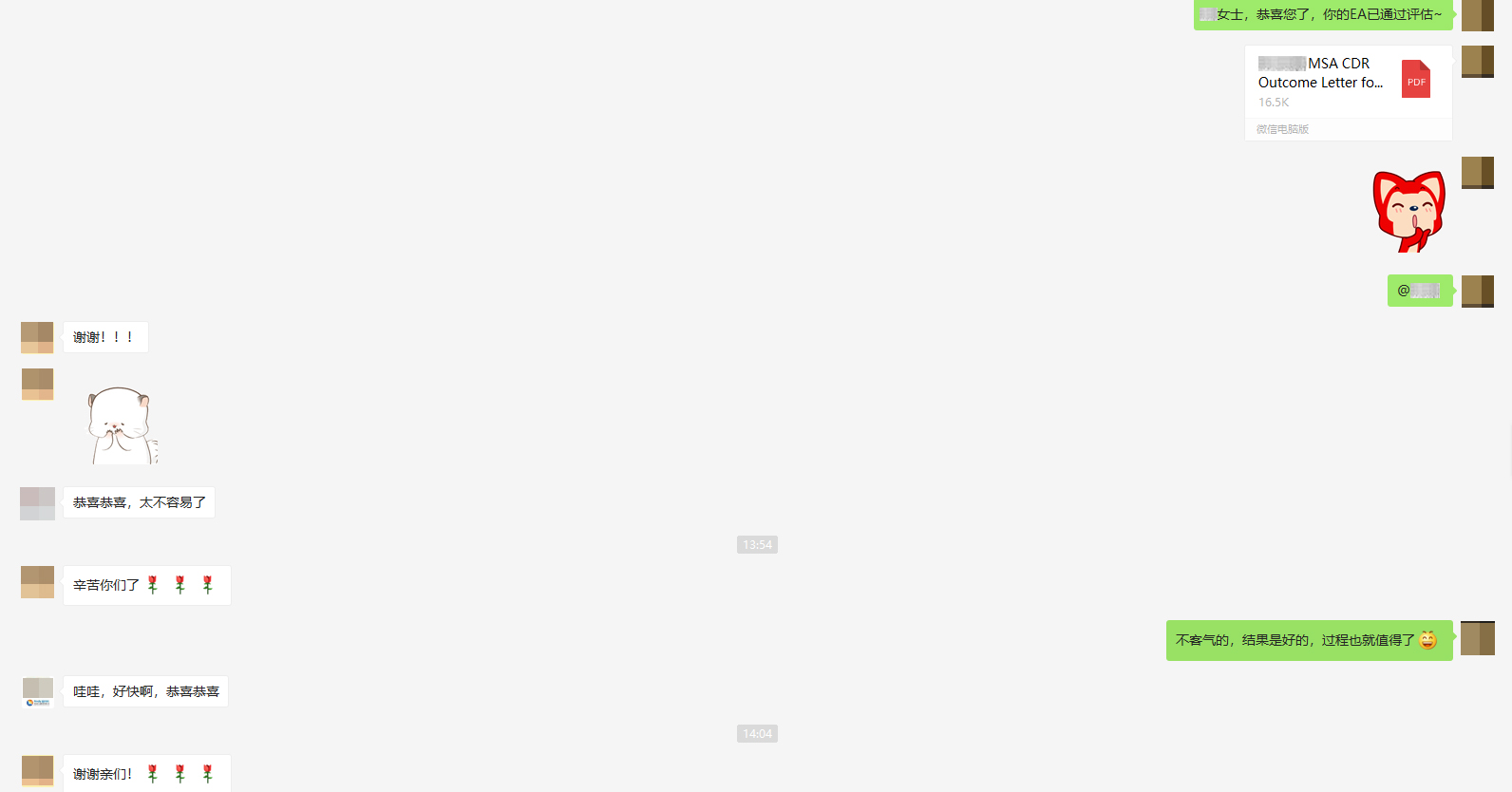 針對EA評估的重點環(huán)節(jié)——CDR,客戶提供了部分原素材,飛克文案幫忙對客戶的CDR原素材進行了查重和多次篩選,精選出有效可用的素材并加整理形成報告,后又經(jīng)過多次修訂和改寫完善最終定稿。另外,由于客戶學(xué)歷的特殊性且學(xué)習(xí)成績單已遺失,為避免EA要求補成績單,文案結(jié)合客戶情況撰寫了一封cover letter對此作了詳細的解釋。最終客戶成功通過EA評估。