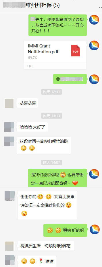 2月18日:恭喜Mr.Qin維州190簽證下簽(工程技師)!