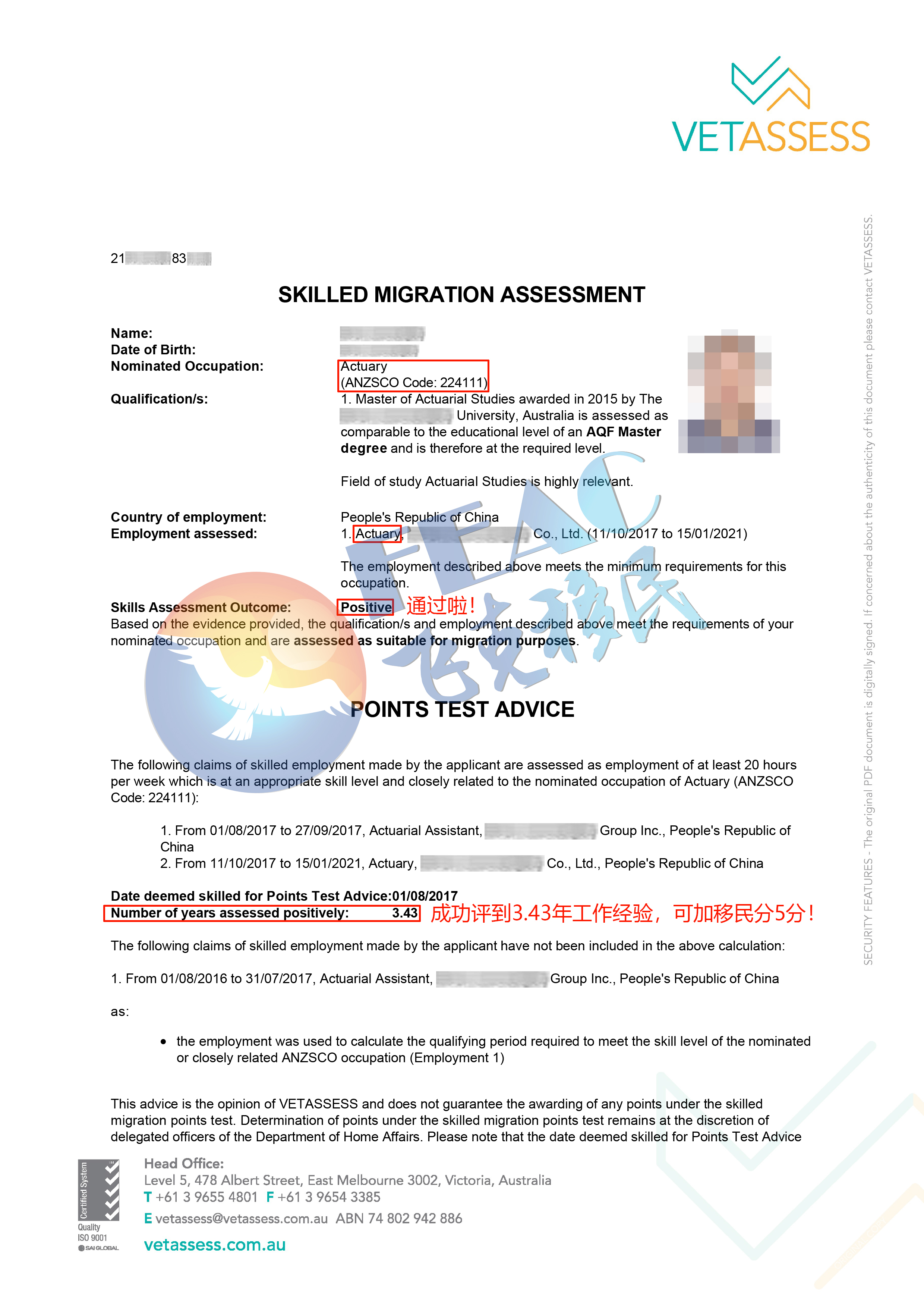 客戶學(xué)歷背景及工作背景都與評估職業(yè)相關(guān),自身條件較為不錯。在申請過程中,與飛克文案的配合度也非常高,按照文案的指導(dǎo)有條不紊地備好各項材料,文案對其提供的材料仔細檢查,對不足之處進行修改和完善。最終,遞交申請后無電調(diào)順利通過評估。