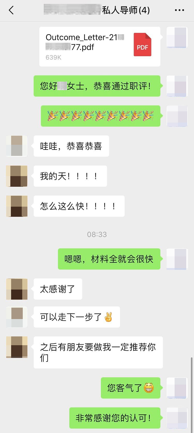 客戶(hù)之前在其他機(jī)構(gòu)做過(guò)一次職評(píng)但是被拒了,找到飛克重新辦理職評(píng),飛克對(duì)此次申請(qǐng)高度重視,仔細(xì)了解客戶(hù)情況,分析上次被拒的原因并為客戶(hù)重新進(jìn)行職業(yè)定位。在確定二次申請(qǐng)的職業(yè)后,飛克文案快速為客戶(hù)準(zhǔn)備相關(guān)材料,客戶(hù)也積極配合,最終遞交申請(qǐng)后快速通過(guò)評(píng)估,客戶(hù)對(duì)飛克的專(zhuān)業(yè)非常認(rèn)可!