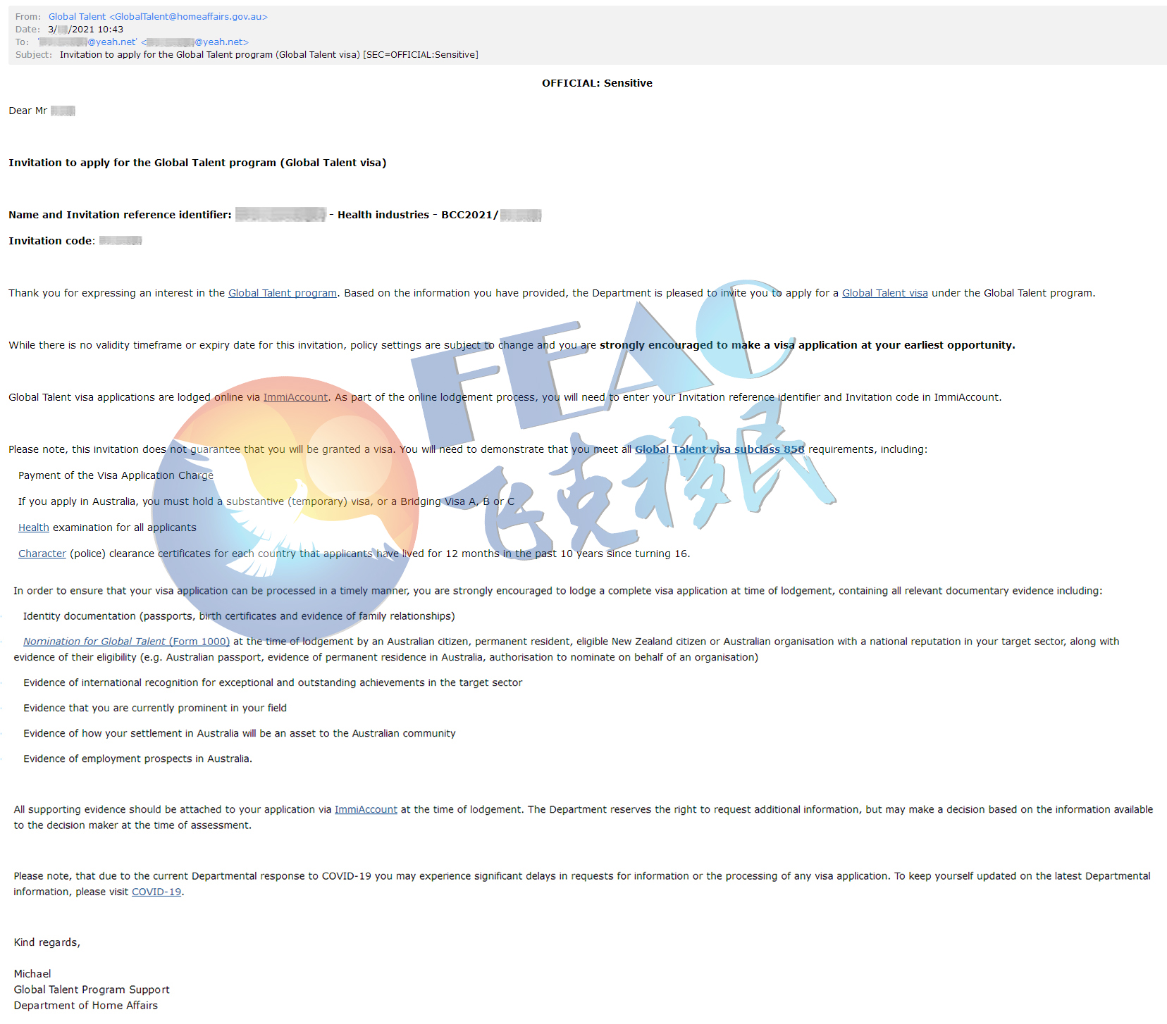3月22日:恭喜Mr.Chen全球人才GTI項目EOI獲邀!