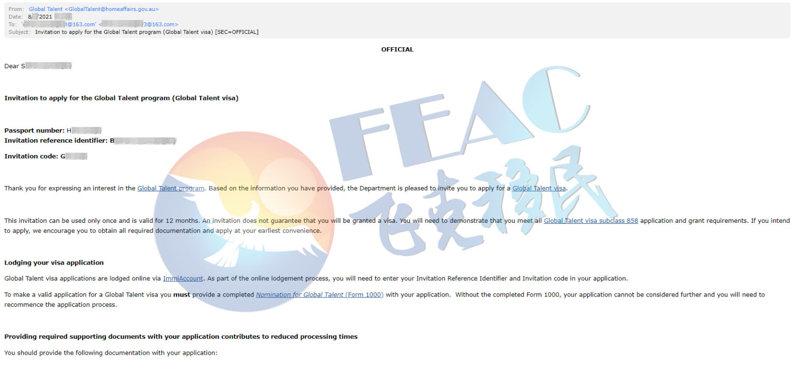 8月10日:恭喜Ms.Wei全球人才GTI項目EOI獲邀!