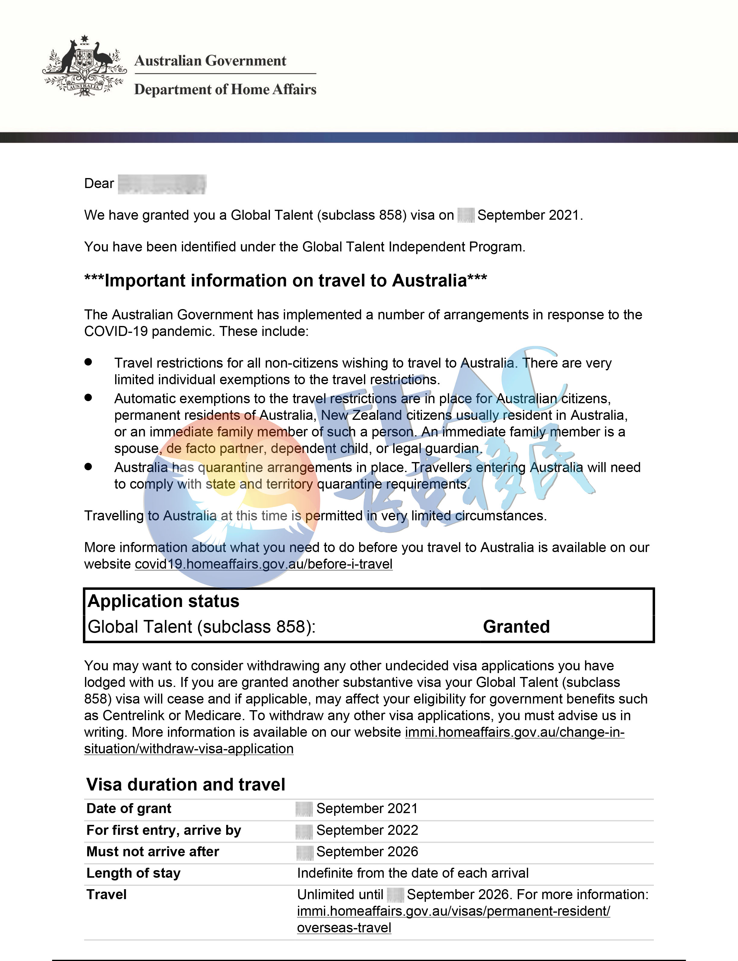 2021年4月27日遞交GTI EOI,2021年6月21日EOI獲邀。2021年6月30日遞交858簽證申請,2021年9月3日858簽證下簽。