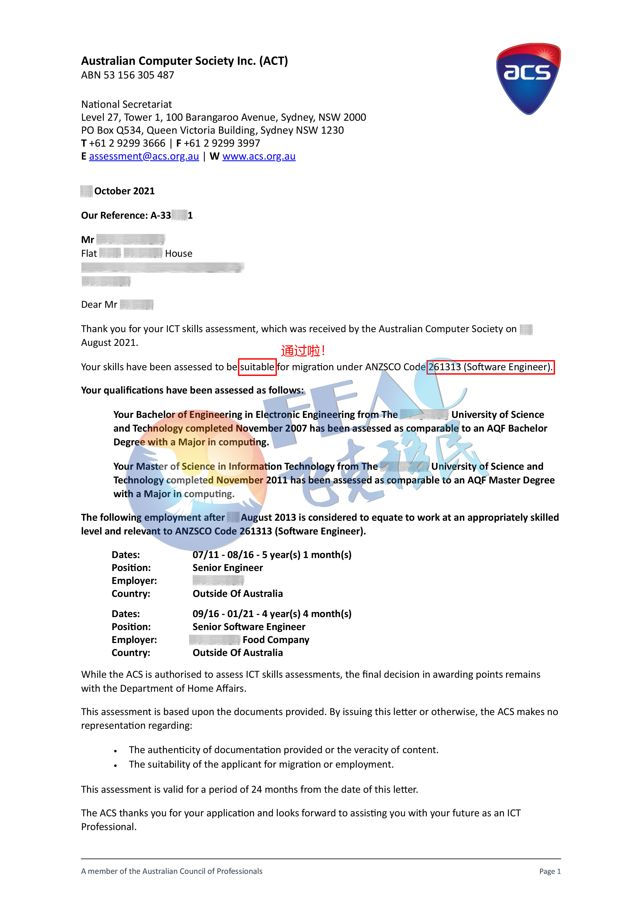 10月8日:恭喜Mr.Cheng通過ACS評估(軟件工程師)!