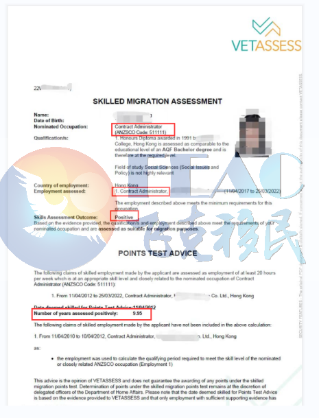 申請職業: Contract Administrator (合同管理員) ANZSCO 51111;