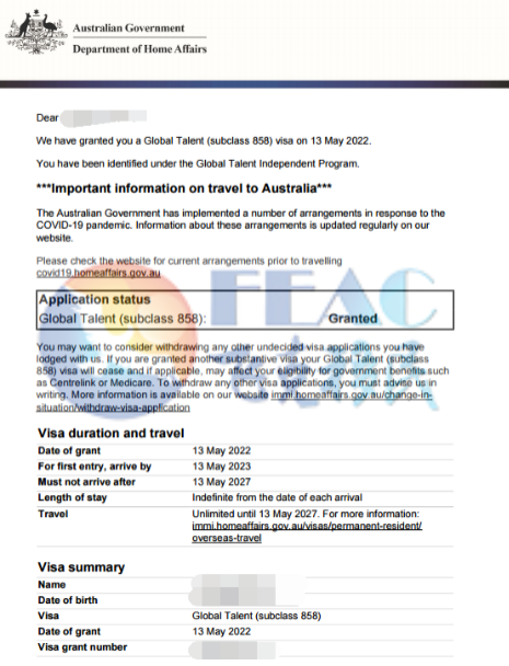 客戶2021年5月18日遞交GTI-EOI,2021年9月27日GTI-EOI獲邀;2021年12月23遞交簽證,2022年5月13日下簽!