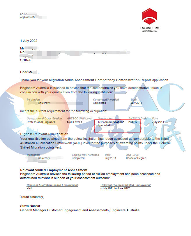 申請職業:Telecommunications Specialist(電信系統專員) ANZSCO 263312;