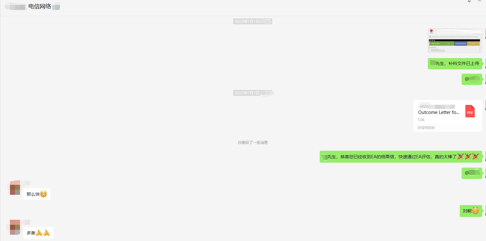 2022年5月25日遞交EA加急評估,2022年6月15日要求補料,2022年7月1日遞交補料文件并通過評估。