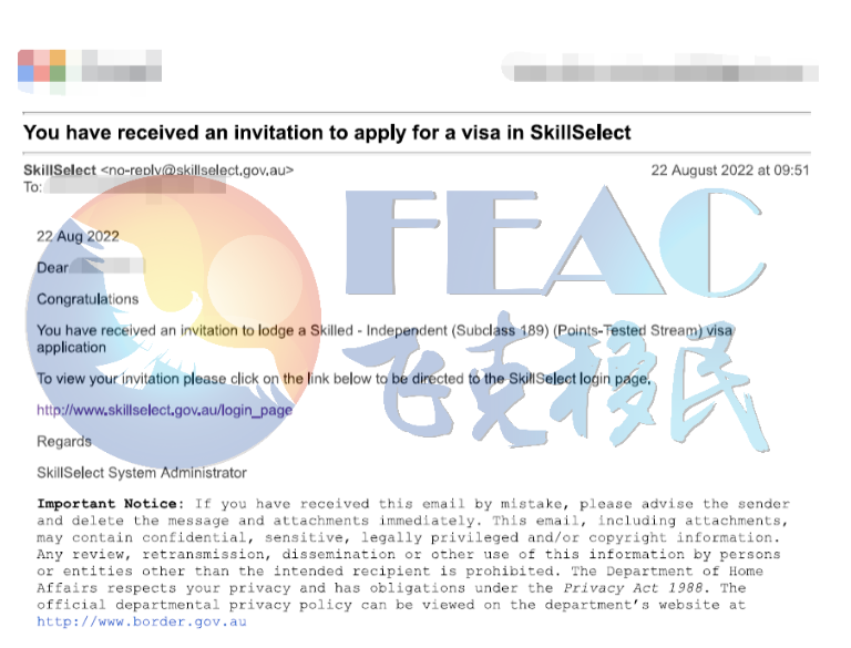 8月22日:恭喜Ms. Li澳洲境內189簽證獲邀!