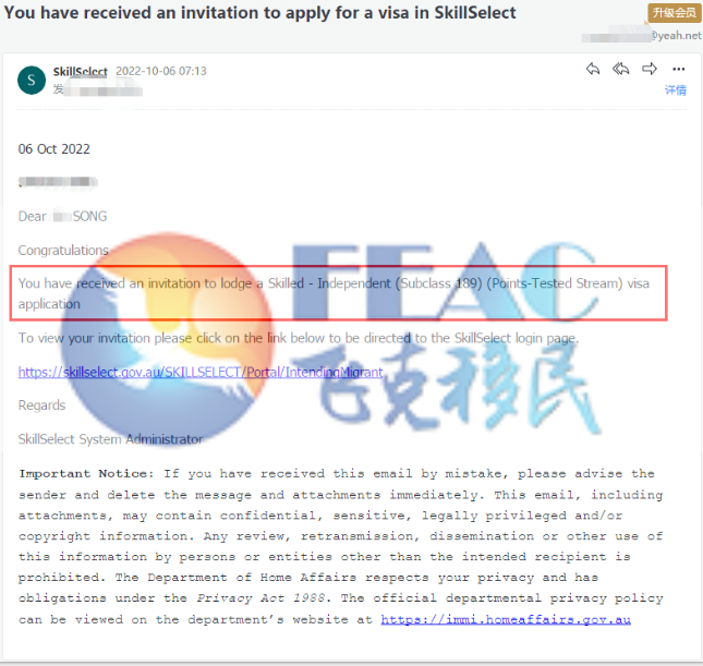 該客戶于2019年10月18日遞交EOI,中途三次更新, 最終2022年10月06獲邀,獲邀分?jǐn)?shù)80分!
