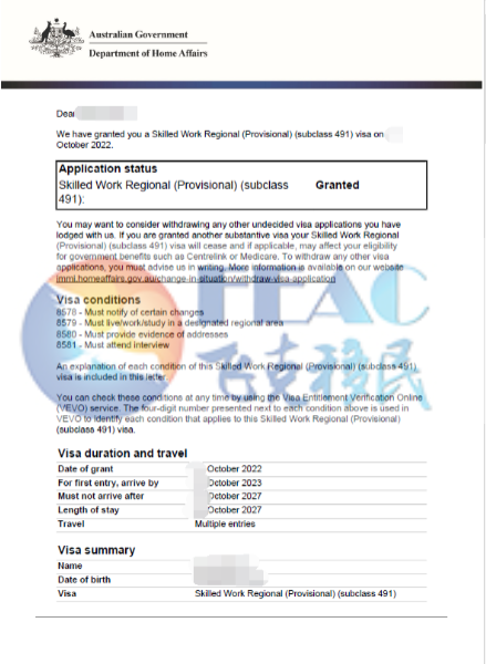 10月21日:恭喜Ms.Lin昆州491簽證下簽!(境外)