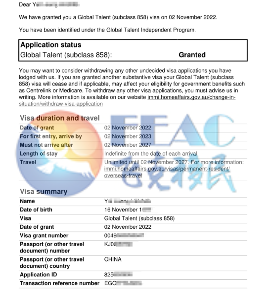 恭喜Mr.Leung 858簽證下簽!