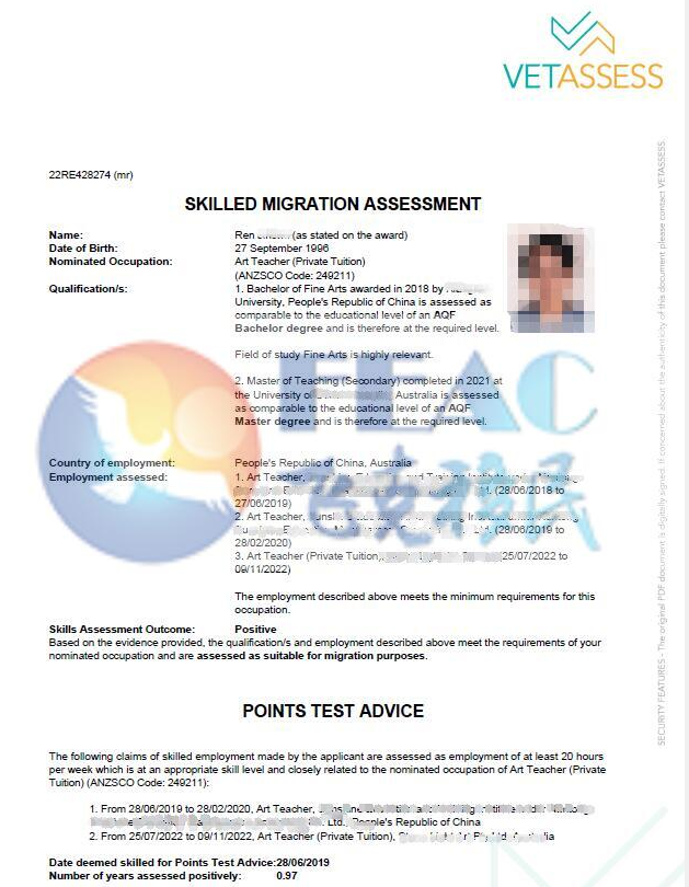 申請職業: Art Teacher (Private Tuition)(美術老師(私教))ANZSCO 249211;