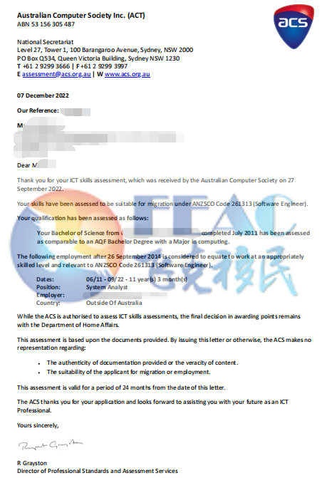 申請職業:261313 軟件工程師 Software Engineer,文案在綜合評估客戶公司背景以及工作細節以后,為客戶撰寫了既滿足官方職責要求又貼合客戶實際工作的推薦信,最終無補料順利通過職評。20220927遞交 20221207通過。