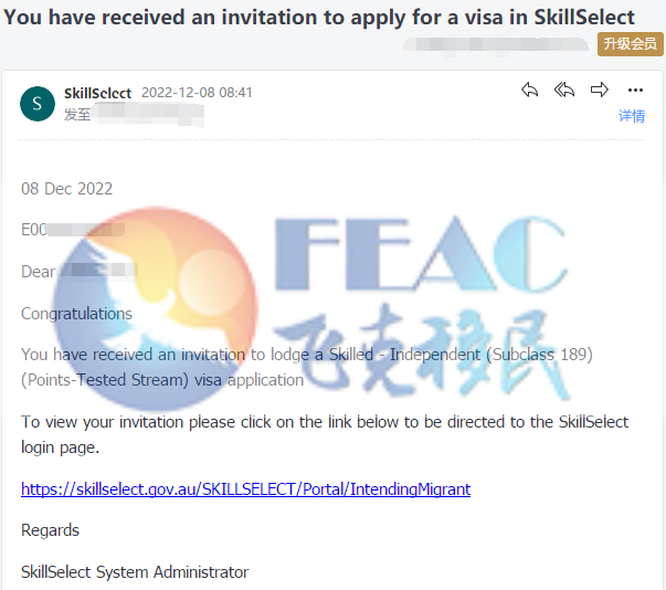 客戶獲邀分?jǐn)?shù)70分, 20221008遞交EOI 20221208獲邀。