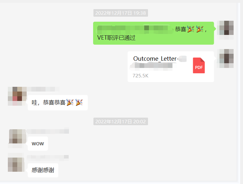 12月17日:恭喜chen?女士VET職評順利通過!
