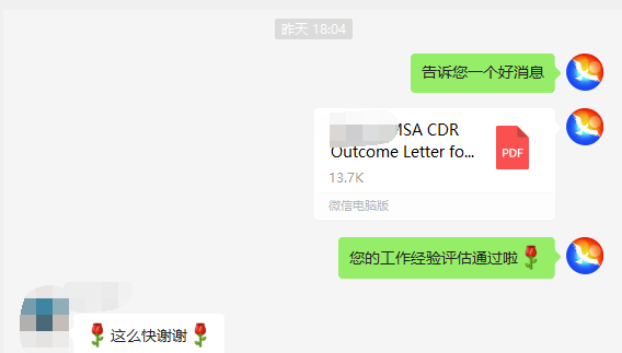 2022年12月27日遞交EA工作經驗認定材料,2023年1月10日通過。該客戶是加做工作經驗評估,其實客戶本身職業更適合評估ACS,但是為了確保州擔階段工作經驗加分,選擇評估EA,同時為了確保移民局對該職業評估EA的認可,在取得通過信之后選擇加做工作經驗評估。文案幫助客戶起草工作推薦信,指導客戶準備并遞交材料,最后以IT背景順利通過EA工作經驗認定!
