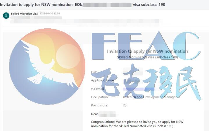 獲邀分數:70(含州擔保5分)2022.12.15遞交EOI,2023.1.10獲邀。
