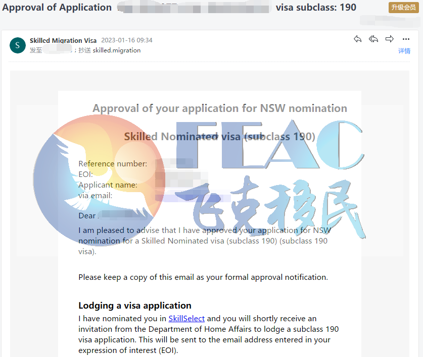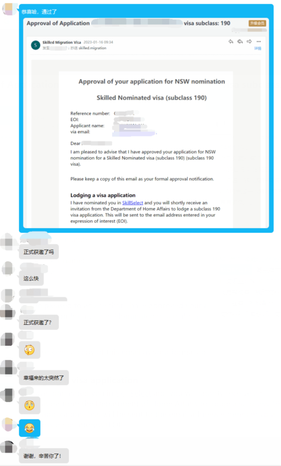 恭喜Mr. Zhao NSW 190州擔保獲邀!(境外)