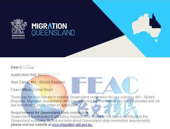 恭喜Mr. Wu QLD 491 州擔保預獲邀 !