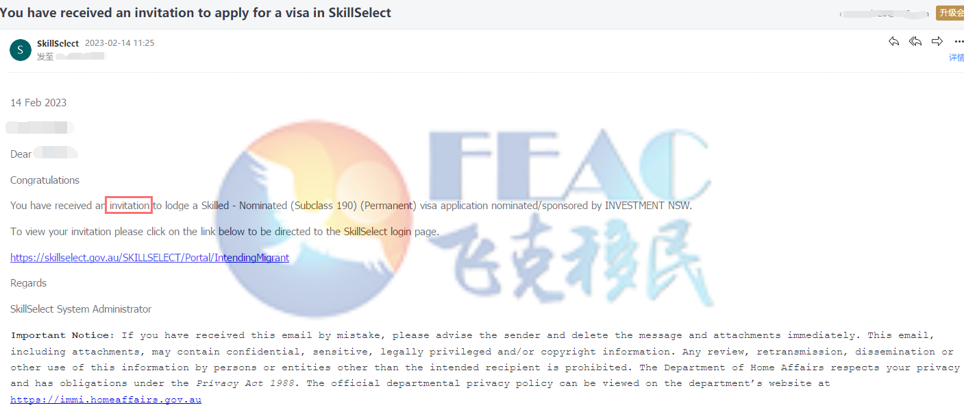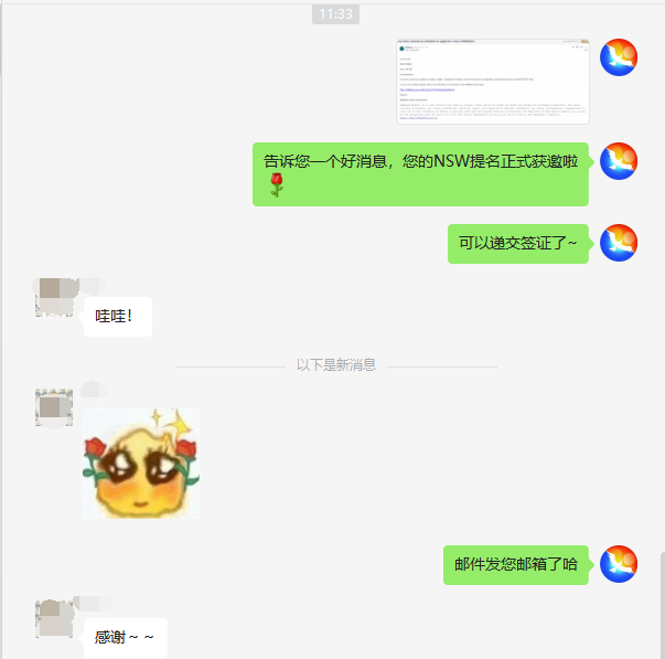 恭喜Ms.ZHANG NSW190提名正式獲邀,可以遞交簽證啦?。。?br />