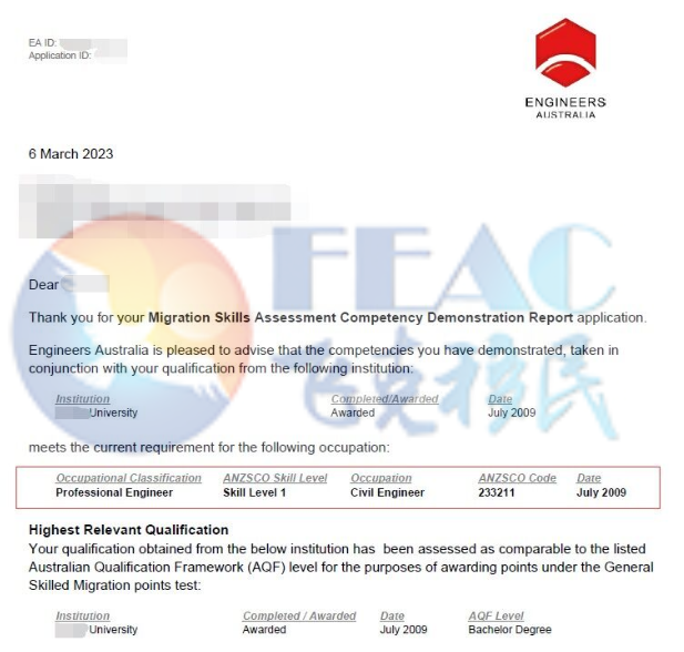 申請職業:Civil Engineer(土木工程師)ANZSCO 233211